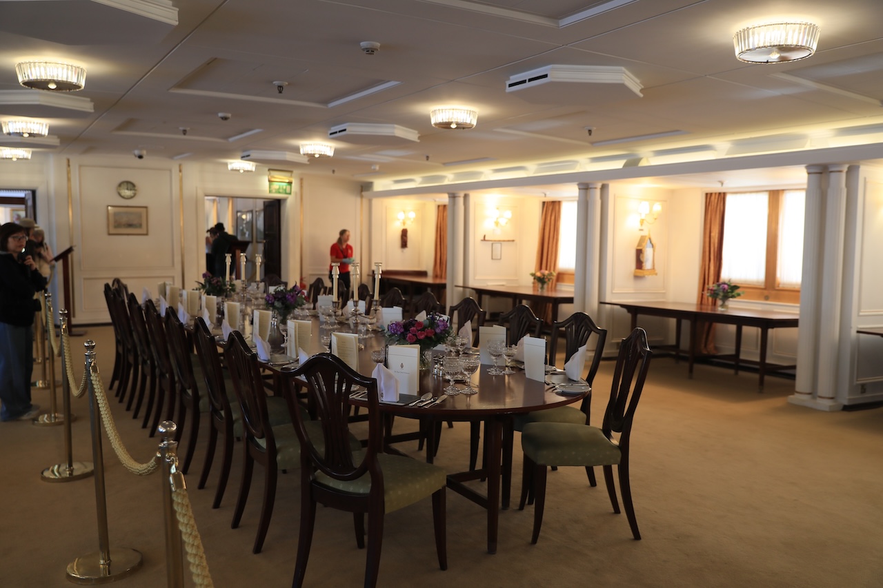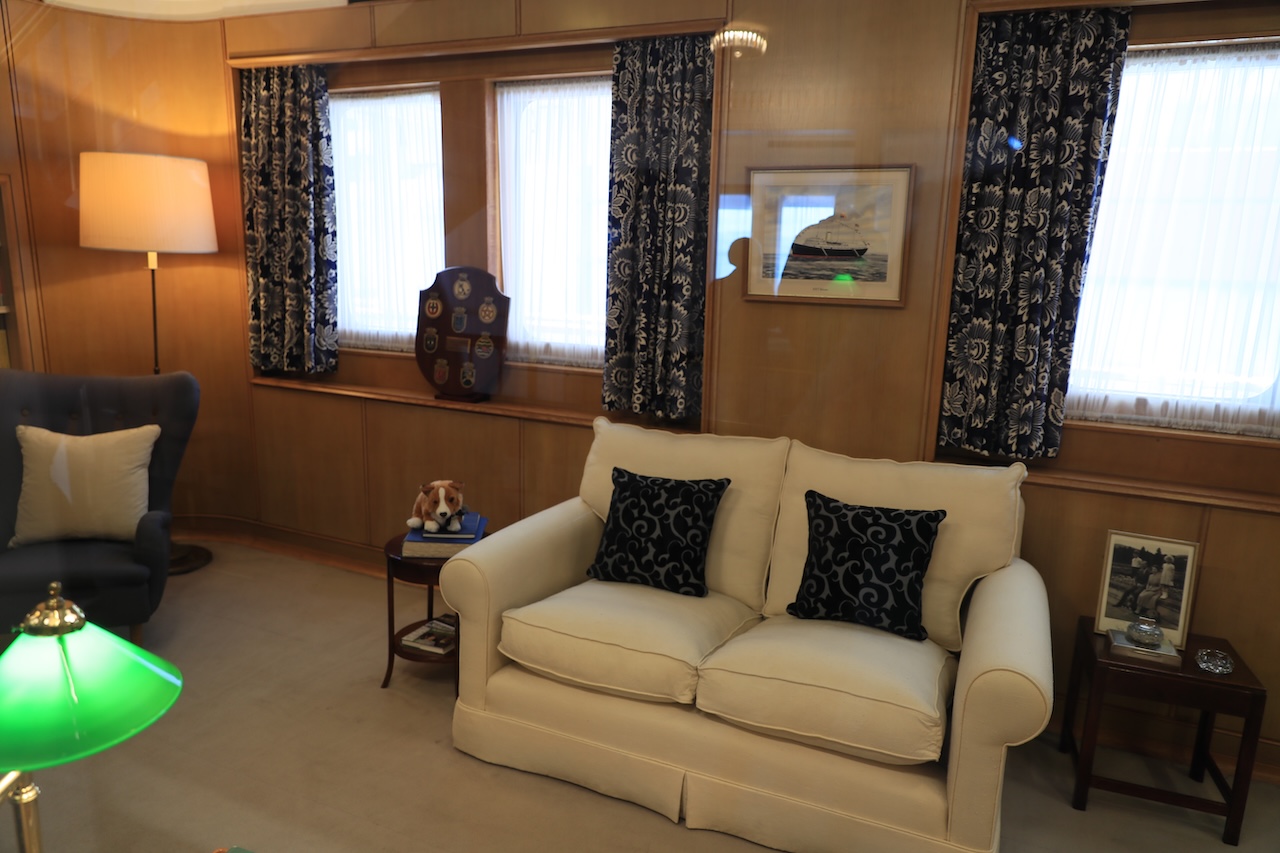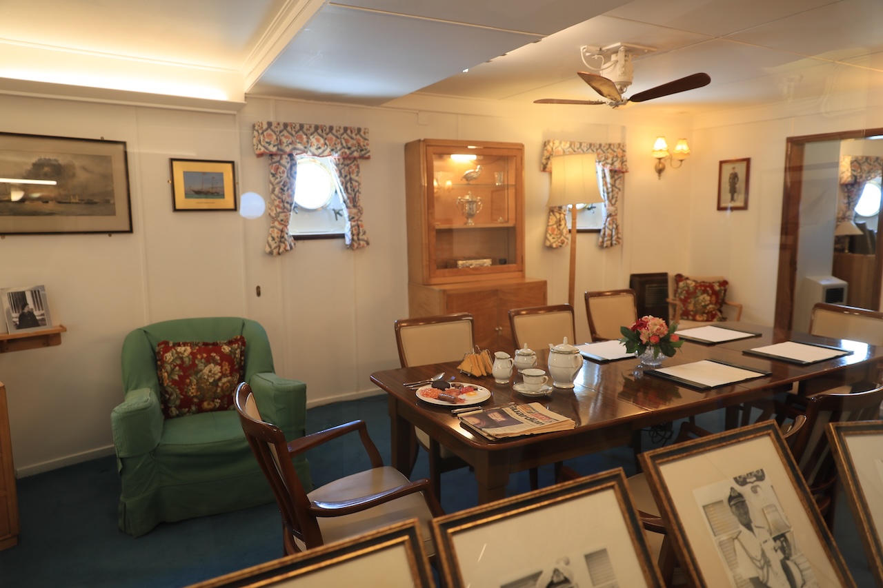 女王艙室在右邊,菲利普和貴賓艙室在左邊。這女王也心大……