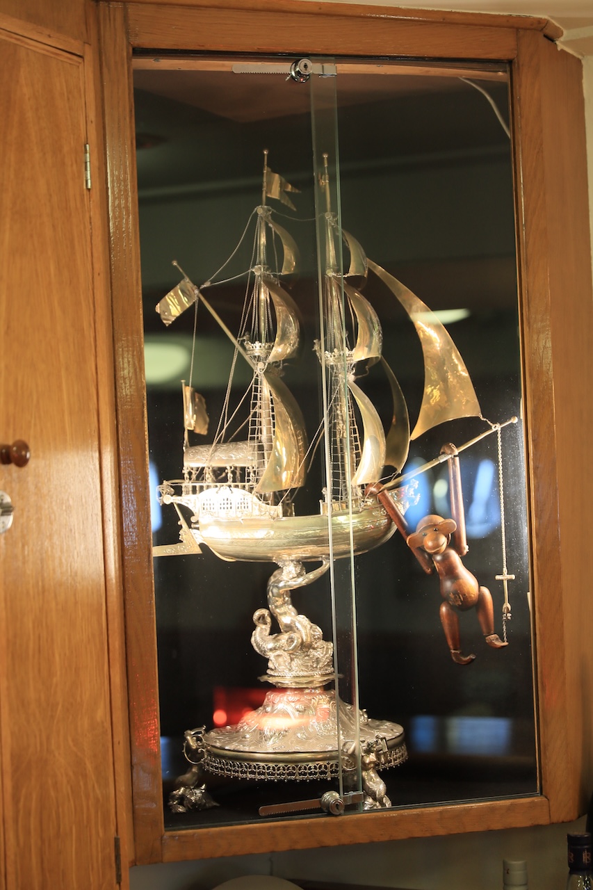 這小猴子是船上的吉祥物,據説會神秘地亂跑,現在鎖在玻璃櫃子裏,再不亂跑了