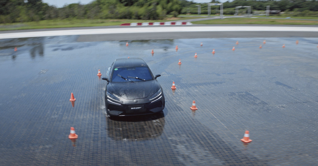 然後比亞迪在輪邊再加上了兩台最大轉向角度可達 10 °的後輪轉向電機。於是,兩個後輪除了前後,還可以左右擺動,又是 “ 外八 ” 又是 “ 內八 ” ,實現總共六個方向的變動。再把後輪跟前輪的轉向形式簡單排列一下,就已經有 16 種變化了。
