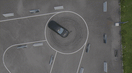 這下可就玩出花來了,比如我們面對一些陰間的斷頭路停車位,可以通過電控,把一個前輪鎖死作支點,後輪呈外八姿勢,一個向後轉,一個向前轉, 240 千瓦的後輪電機帶動整車橫移停進去。