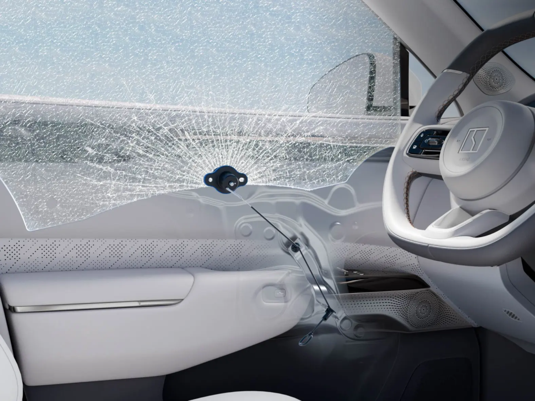 還有這個一鍵破窗的功能,要是遇上了不小心衝到水裏的情況,只要拉一下車門裏的拉鎖就能瞬間把車窗擊碎。