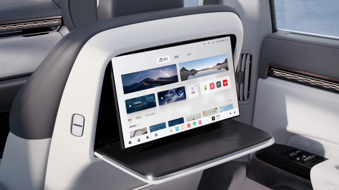 哦對,説到油車味,如果你花費了 1 萬選裝,那麼你不僅可以擁有能夠電動控制靠背和坐墊角度的後排座椅,還能在副駕座椅的背後多出一套這個玩意( 椅子 5 千,屏幕 5 千 )。