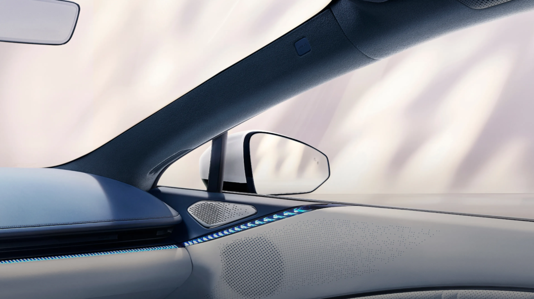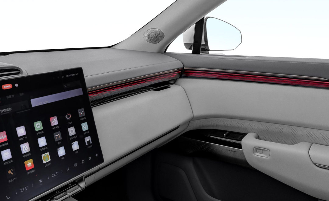 7X 的車裏雖然用的依舊是貫穿式的燈條,但從燈珠直接發光改成了隱藏燈帶 + 反射的結構,甭管是造型還是燈光效果都高級了不少。