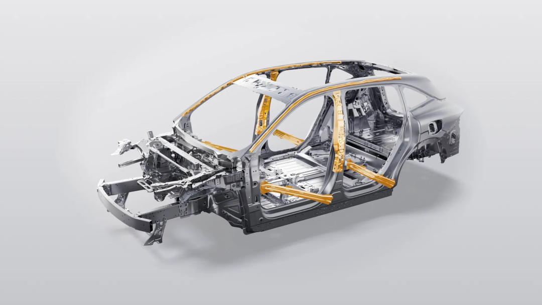 再就是安全,這次極氪 7X 在 A 柱到車頂側邊梁、 B 柱還有車門內部用上了強度高達 2000 兆帕的超高強度鋼,説是為了應對更兇猛的貨車側碰。