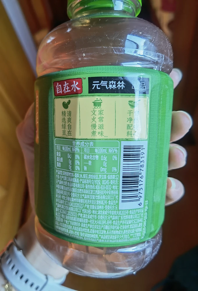 另一個“網紅”元氣森林綠豆湯,同樣把“綠豆、羅漢果、水”作為招牌,主打一個配料乾淨。