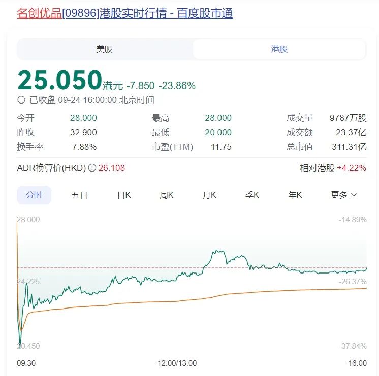 美股方面,截至9月23日收盤,名創優品下跌16.65%,報收13.72美元/股,創下今年2月以來新低。港股方面,9月24日開盤後,名創優品一度跌至20港元/股,跌幅近40%。按照百度股市通提供的市值計算,為了這場入股,名創優品預先“掏”了149億元左右的市值。