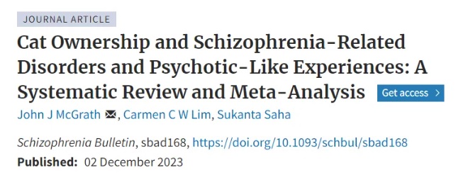 一項新的研究指出,年輕時養貓可能與未來發展精神分裂症的風險增加有關。這項研究由澳大利亞昆士蘭大學的研究團隊在《精神分裂症通報》期刊上發表,其研究論文標題為“養貓與精神分裂症相關疾病和類似精神病的體驗:一項系統回顧和薈萃分析”。