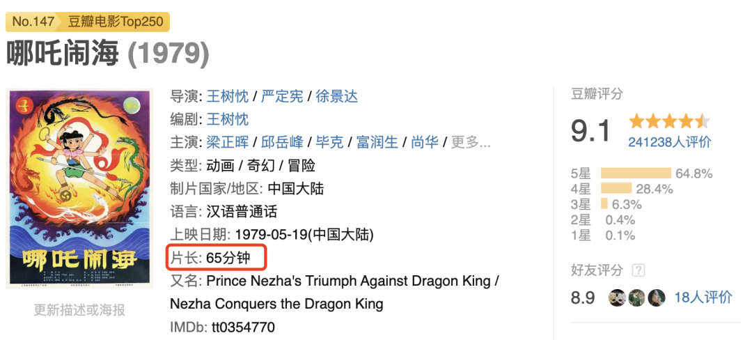 我發現豆瓣詞條上標註65分鐘的電影,如今在各大流媒體上觀看均缺少了一些片段。