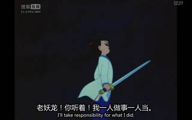 哪吒不忍,心一橫,咬住頭髮,拾起寶劍指向天空,對龍王吼道: