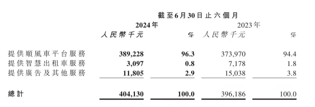 從半年報來看,嘀嗒出行的收入96.3%來自順風車業務,餘下的是0.8%的智慧出租車服務和2.9%的廣告及其他服務。其中,智慧出租車的營收同比減少了56.9%,廣告及其他的收入同比減少了21.5%,均為下降趨勢。