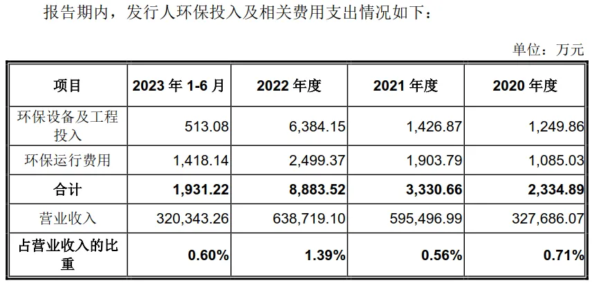 關於環保方面的問題,嘉立創在回覆中詳細介紹了治理設施的技術或工藝先進性、運行情況、達到的節能減排處理效果以及是否符合要求、處理效果監測記錄以及保存情況,並公佈了2020年至2023年上半年公司環保投入及相關費用支出情況。