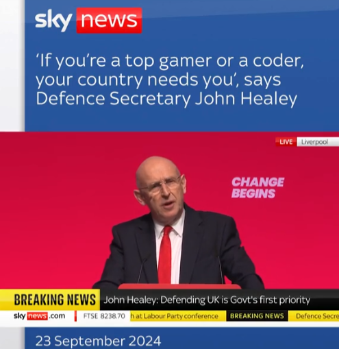 9月23日,在英國利物浦舉辦的工黨年度會議上,新官上任的英國國防大臣John Healey就英國軍隊目前面臨的徵兵困境發表了一番熱情洋溢的演講。