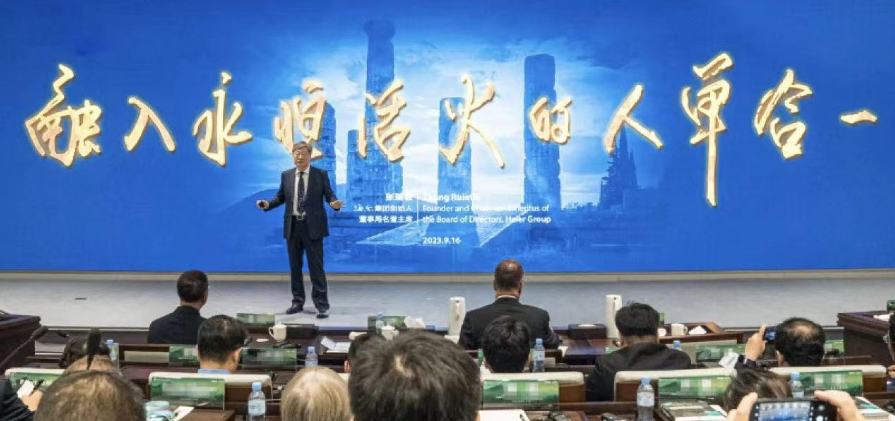 在一場論壇演講末尾,一直以冷靜著稱的海爾集團創始人、董事局名譽主席張瑞敏卻突然調高音調,以一種極富力量的聲音喊道,“讓我們共同跟着時代走,讓別人説去吧!”