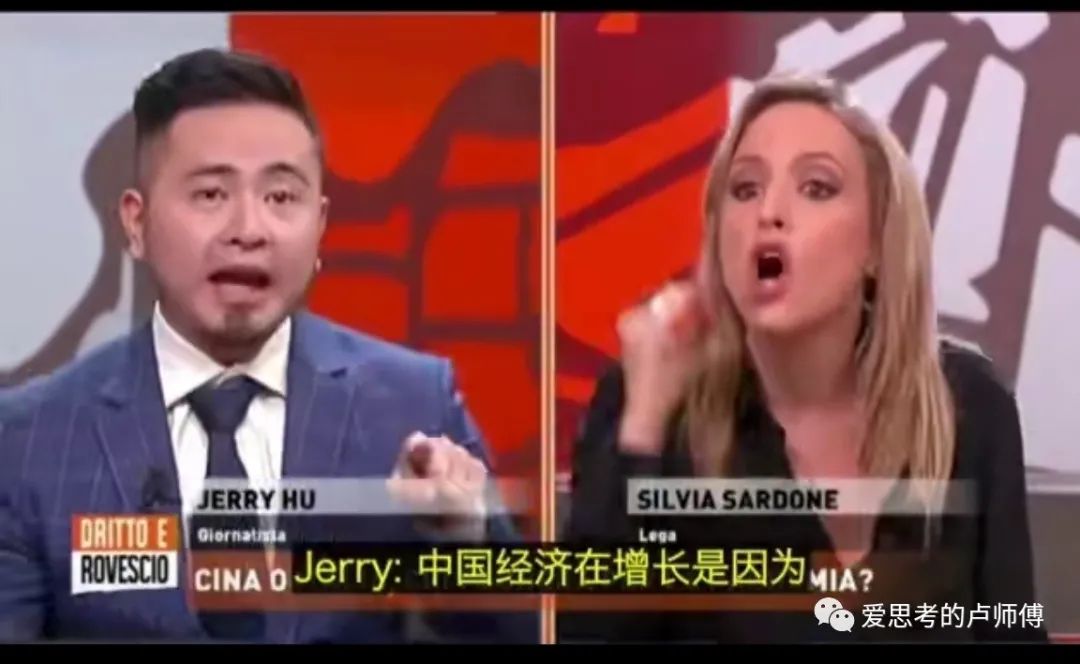 (和華人辯論的意大利女議員西爾維亞,金髮)