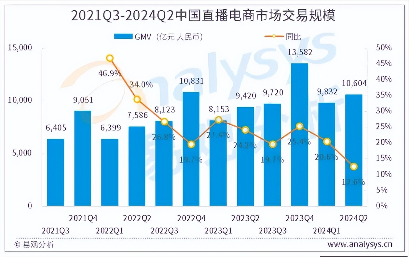 如今直播電商也終是遇瓶頸了,二季度,行業同比增長12.6%,去年還能有48%的增長。