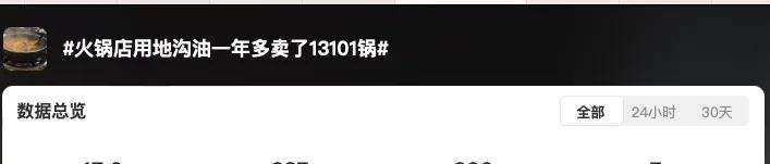 而值得注意的是,這還不是個例,上週,還有一個類似的事件衝上熱搜——火鍋店用地溝油一年多賣了13101鍋。