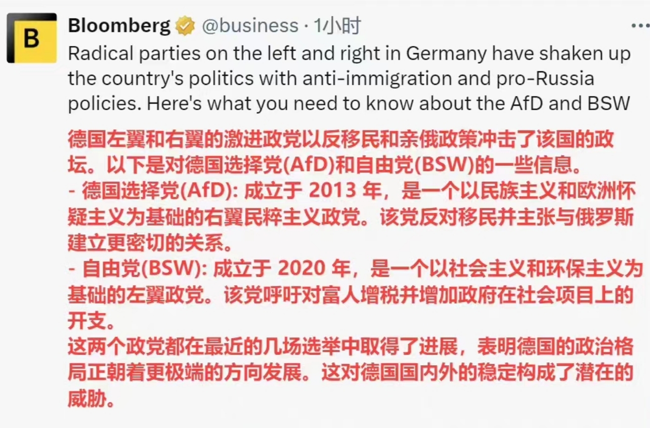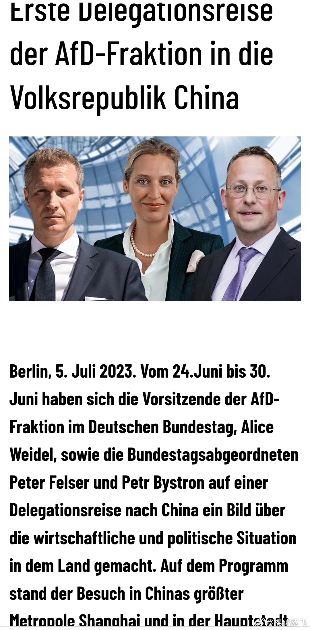 德國選擇黨的領袖魏德爾,之前還曾在中國工作了六年,會講一口流利的中文,對中國非常友好,同時對美國確不友好。
