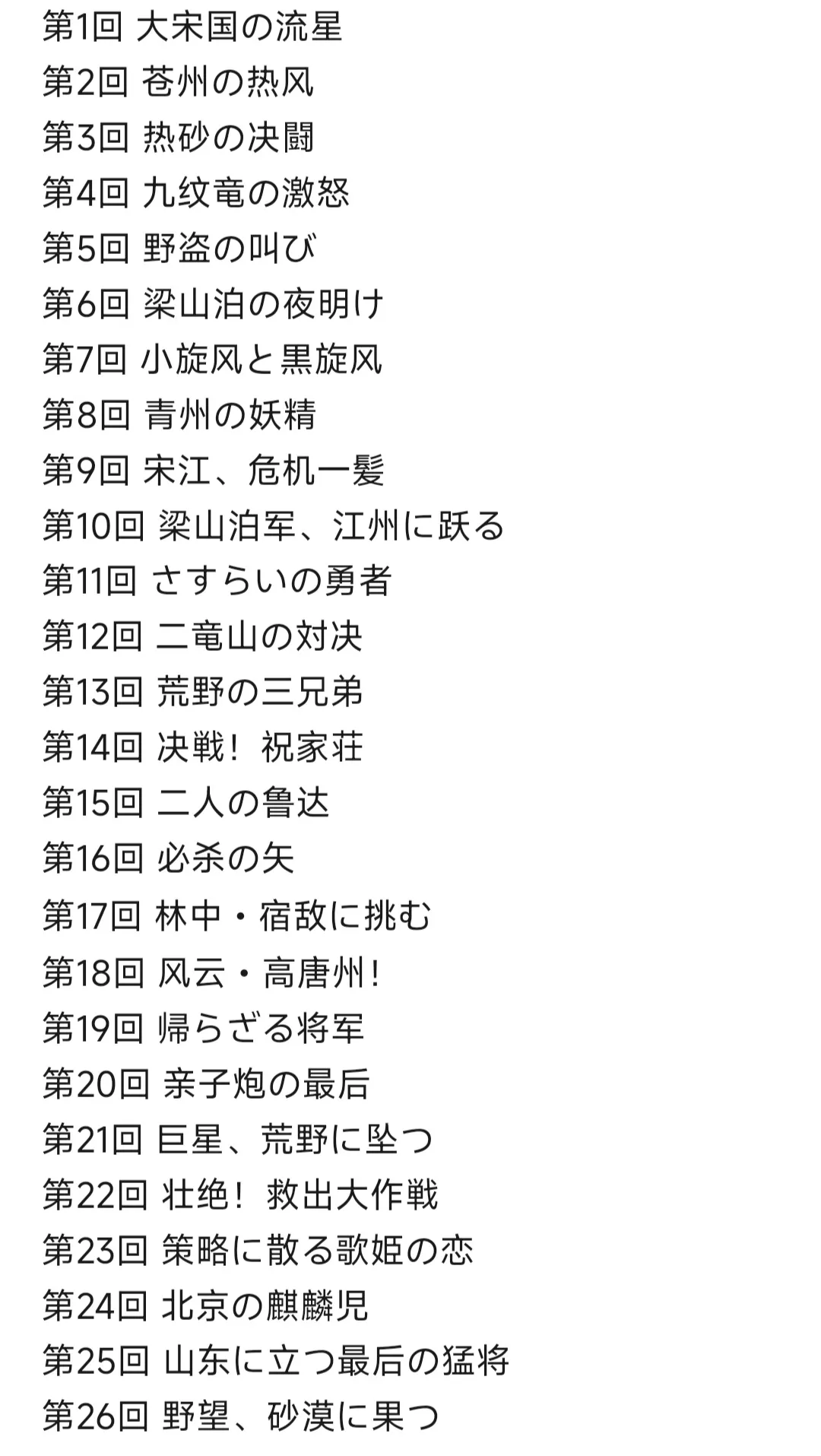 1973版的《水滸傳》,每集的標題也是番劇特有的熱血中二風。