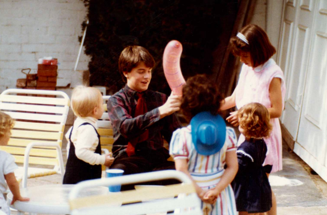 馬修很喜歡孩子,正陪弟弟妹妹玩
