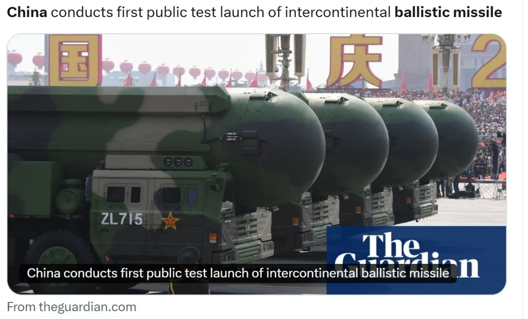 今天早晨9時許,中國國防部發布了一則令人震驚的消息,中國人民解放軍火箭軍部隊,向太平洋方向實施了一次洲際彈道導彈發射試驗。此次試驗使用的洲際導彈攜帶訓練用模擬載荷,是根據火箭軍年度軍事訓練安排實施的例行性發射,發射達到了預期的目的。