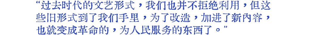 最後,他認為不能拒絕舊形式的文藝,但它們需要改造後為人民服務。