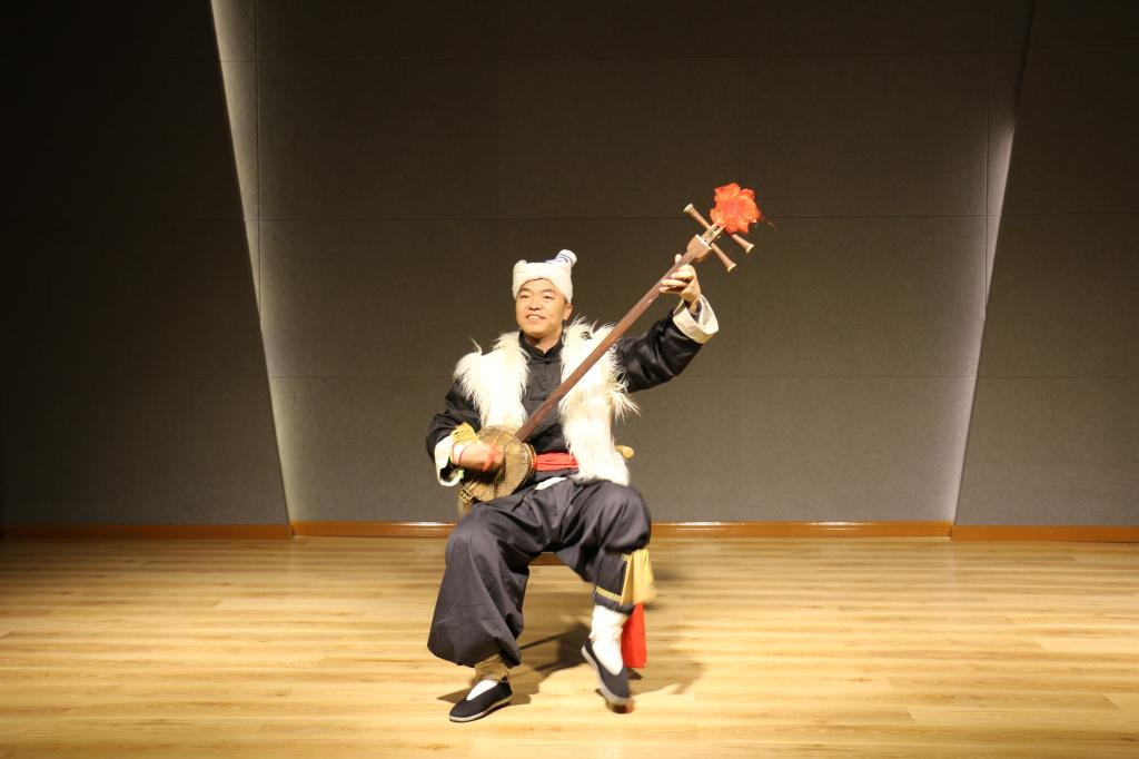 坐場書就是“獨角戲”,説書人手上彈琴、口中唱詞、腳上打節奏,它形式簡單靈活,最能顯示説書人的藝術造詣。
