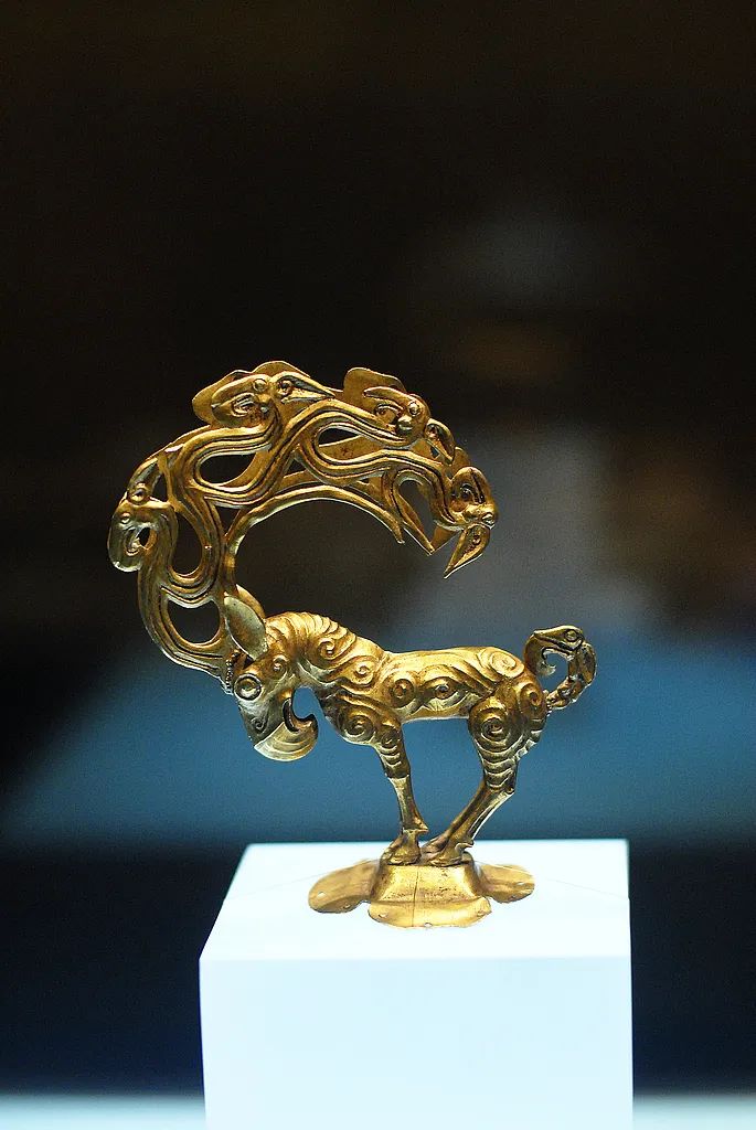 戰國金怪獸出土於陝西榆林市神木縣納林高免村北一座匈奴墓葬中,墓葬距今約2000年