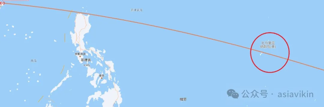 根據落區的大致位置,我在百度地圖上估摸着比劃了一下彈道。相當讓我吃驚的是,這條彈道居然是從關島上空經過的!就算我的估算並不準確,但也大差不差。關島美軍用薩德系統的AN/TPY2雷達(如果其仰角能到90度)會看到這條彈道從他們的頭頂劃過。