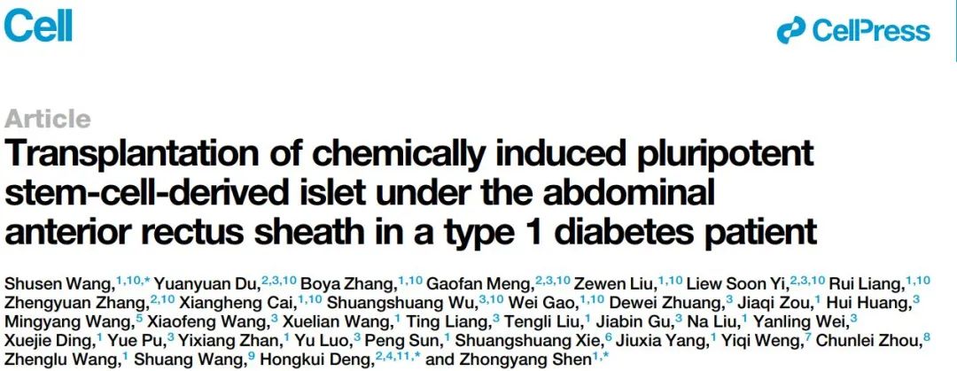 [1] Shusen Wang et al., (2024) Transplantation of chemically induced pluripotent stem-cell-derived islet under the abdominal anterior rectus sheath in a type 1 diabetes patient, Cell Doi: https://doi.org/10.1016/j.cell.2024.09.004