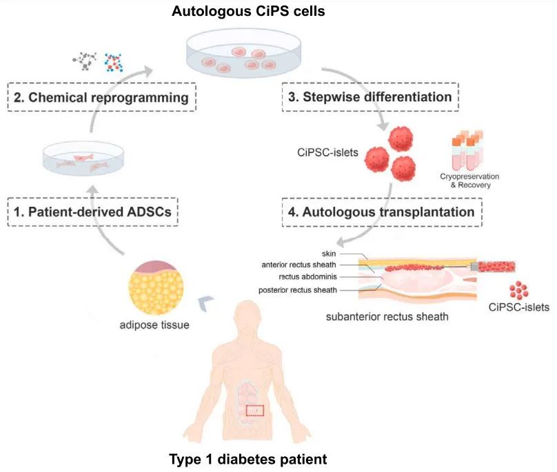 ▲基於CiPS細胞治療1型糖尿病的臨牀研究示意圖(圖片來源:參考資料[1])