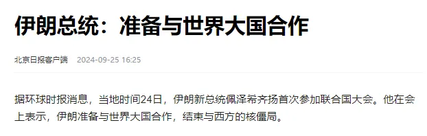 9月24號,以色列正在對黎巴嫩狂轟濫炸,伊朗總統佩澤希齊揚興沖沖的參加聯合國大會,準備重啓伊核協議,在參加完大會後,佩澤希齊揚開了一個新聞發佈會,在會上表達了兩個觀點: