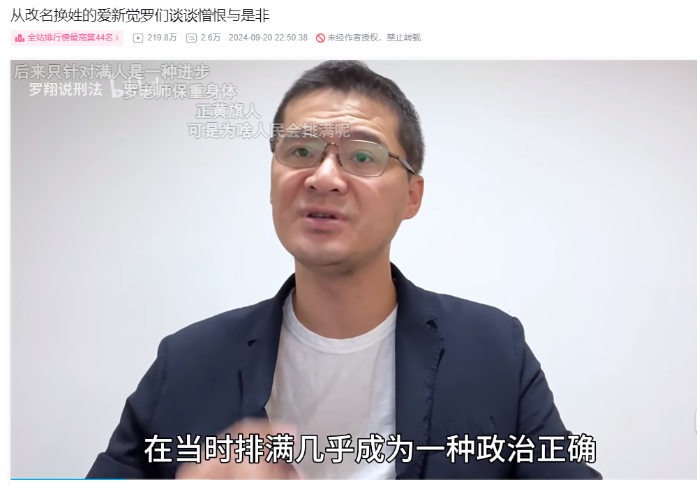 這裏面一個關鍵點在於,大多數人對羅翔討論極端民族主義仇恨可能沒有意見,但是對他這種似乎站隊滿清,支持愛新覺羅的觀點,很有意見。