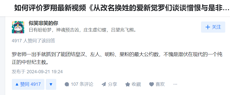 這裏面一個關鍵點在於,大多數人對羅翔討論極端民族主義仇恨可能沒有意見,但是對他這種似乎站隊滿清,支持愛新覺羅的觀點,很有意見。