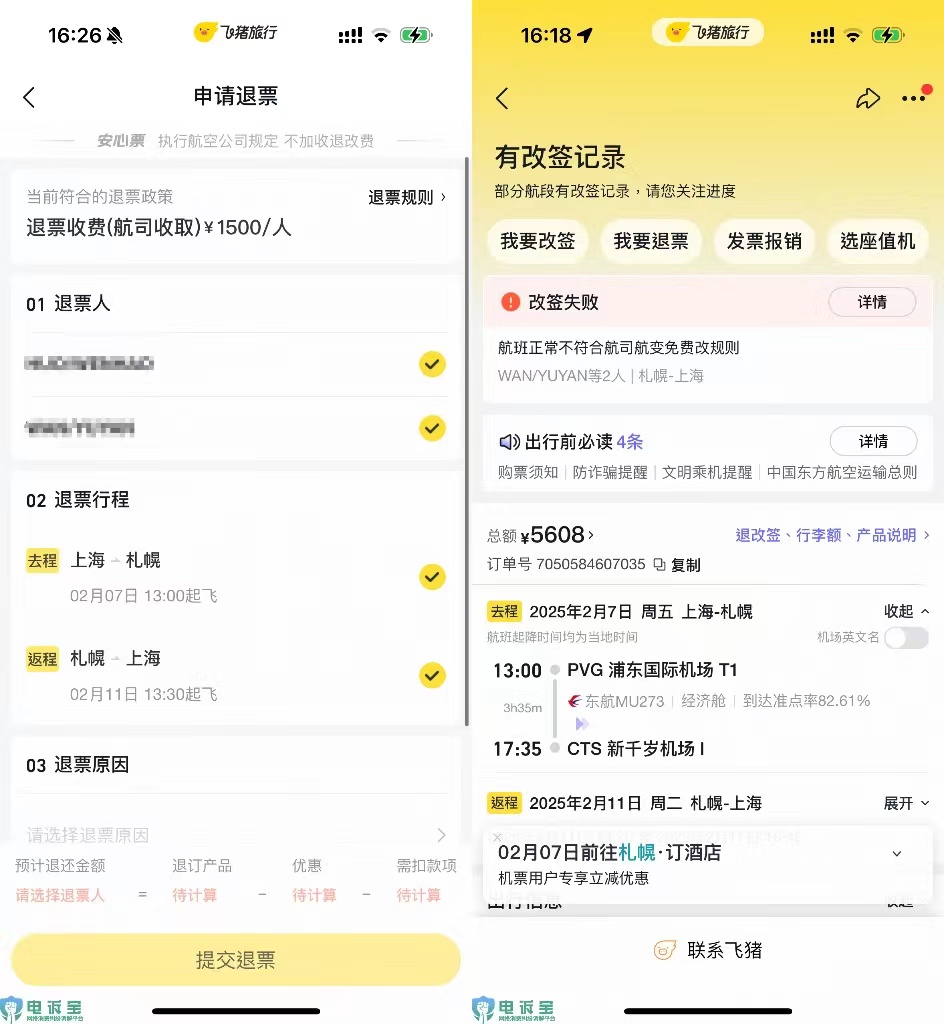 “飛豬”被指退票政策與東航不一致 要高額改簽費_風聞