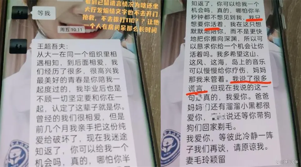 小王在凌晨2點18分留下遺書,毛某早上8點51分看到後回覆“等我”,法醫推算的小王死亡時間是9點。