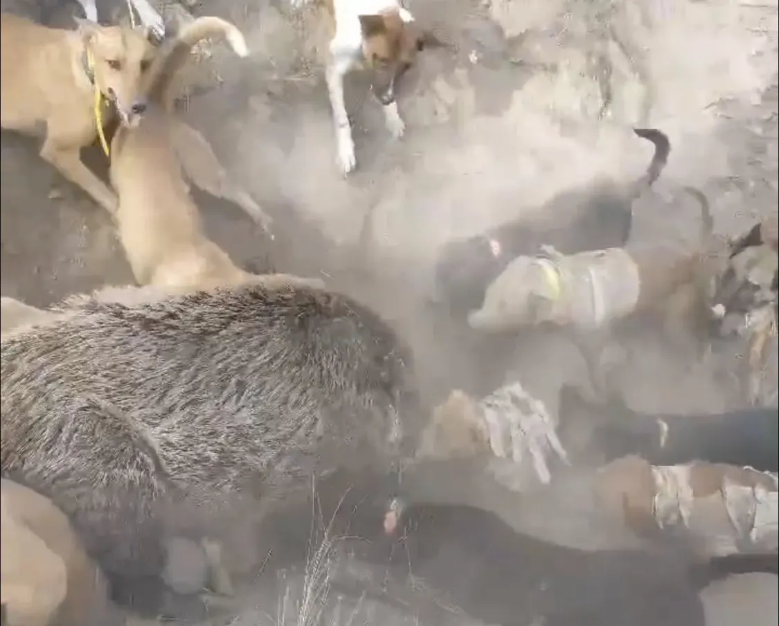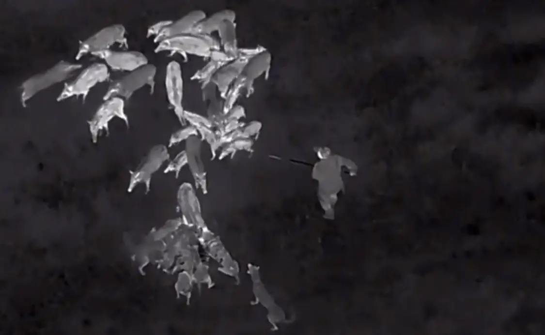 村民發現野豬,會聯繫賞金獵人。帶上15只左右獵犬,狩獵就開始了:獵人們會先用熱成像無人機尋找野豬,離野豬二三百米時,先放頭犬尋找。頭犬嗅覺非常靈敏,能沿着氣味定位野豬。