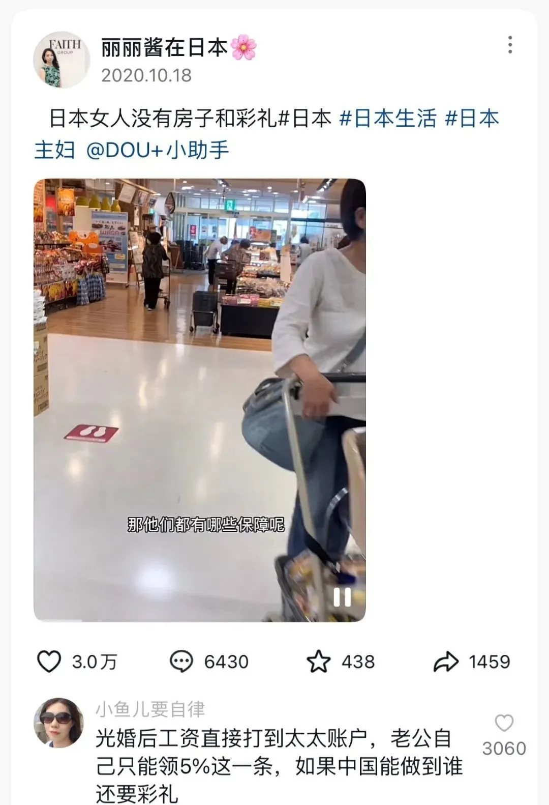 在大家印象中賢良淑德的日本女性,不要房子和彩禮,但是家裏的財政大權需要由妻子來掌控,丈夫只能領到一點零花錢,不工作的主婦還可以加入丈夫的撫養保險,由丈夫和丈夫的公司來承擔,到了一定的年齡即使離婚也可以享受老公的養老金。