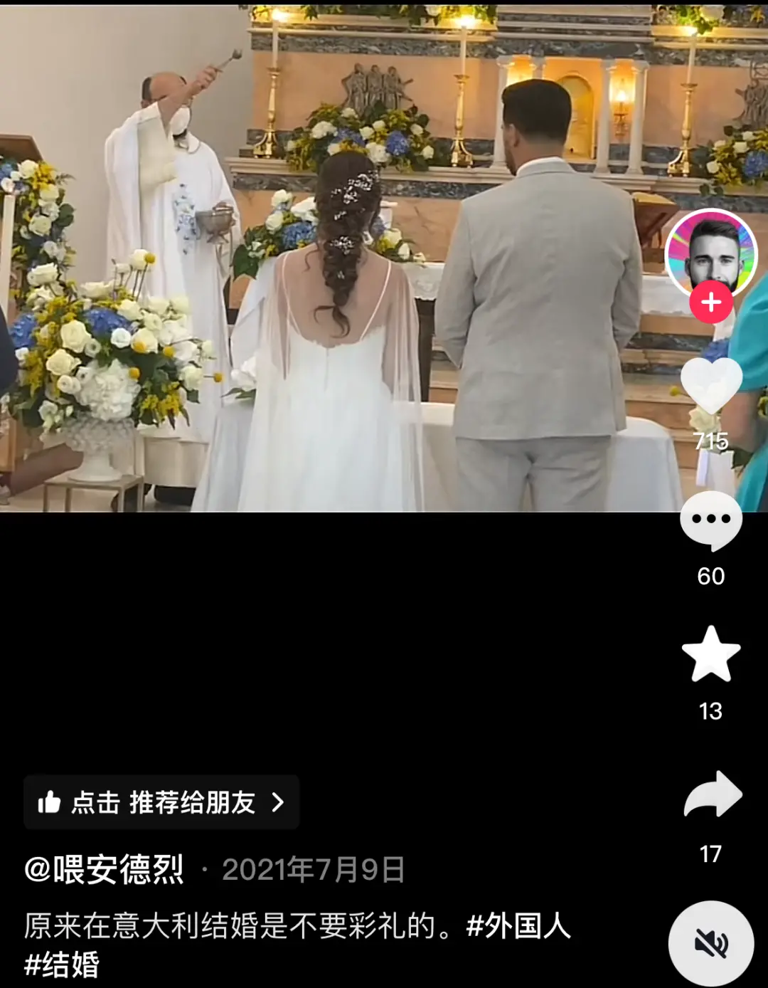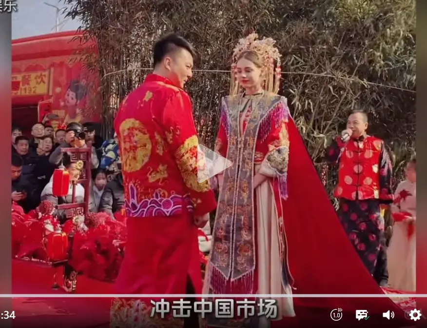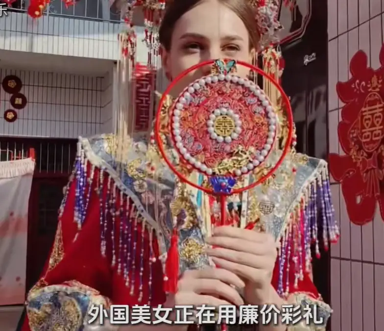 “不要彩禮”受到廣大中華魅力男性的熱烈追捧。這樣的視頻,經常是“外國美女不要彩禮”並配以中國男性與外國美女結婚的婚禮畫面。