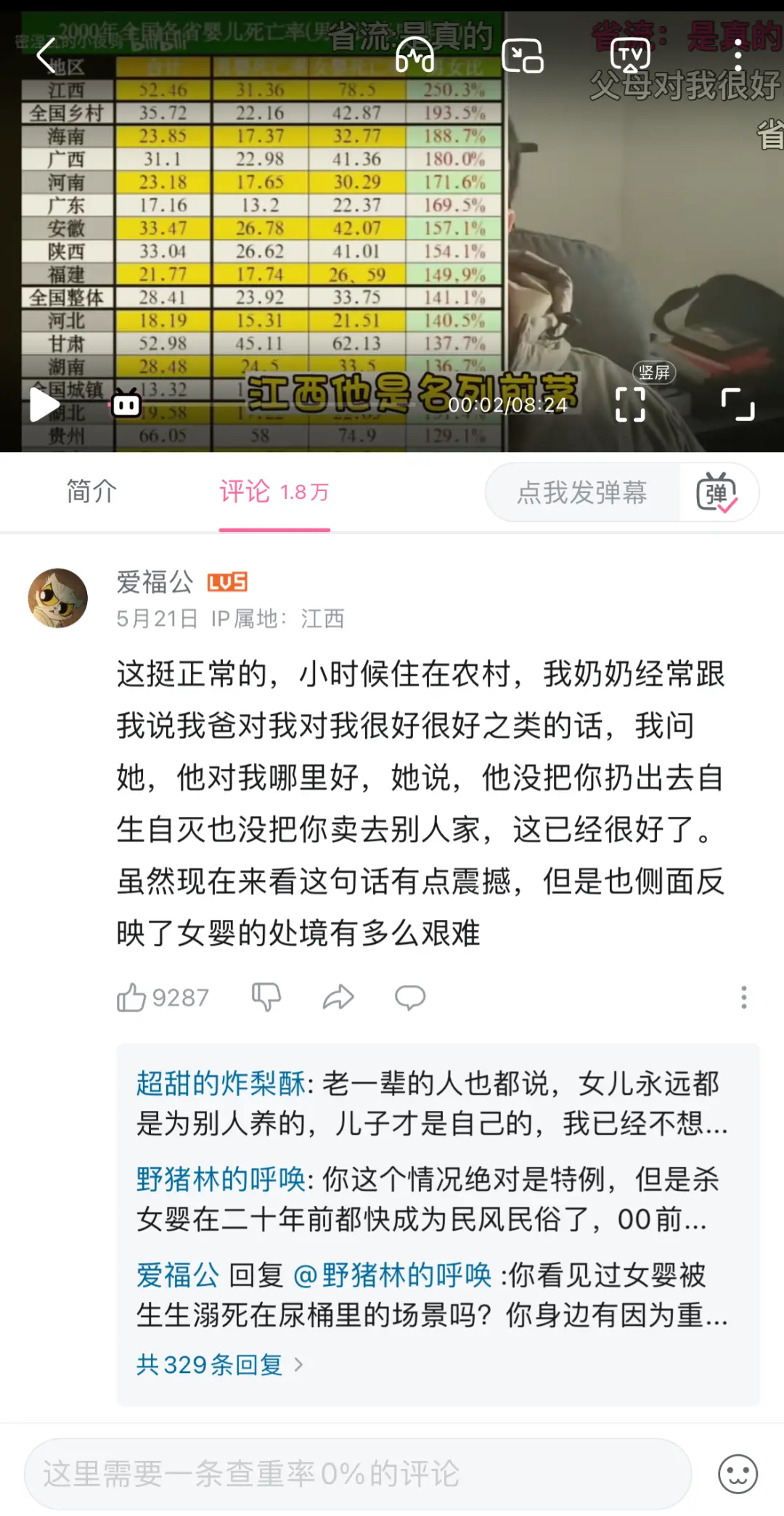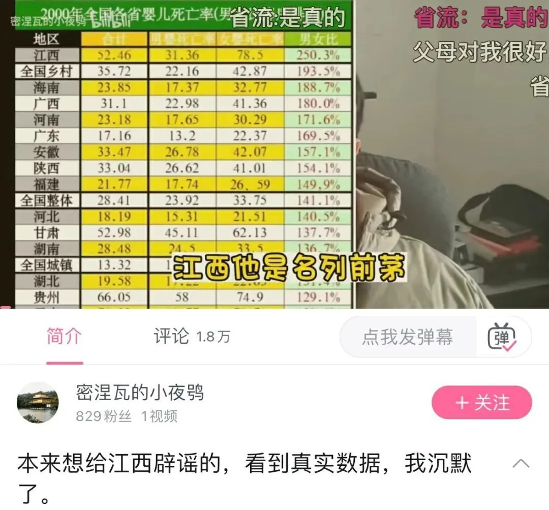 B站有個up主剪了一期視頻,題為“本來想給江西闢謠的,看到真實數據,我沉默了。”