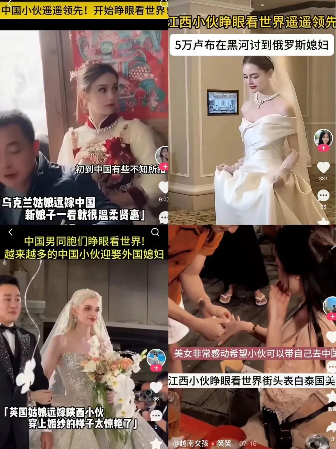 一邊暗戳戳向國內女性喊話:“你們看,要你們彩禮高,這下急了吧?”