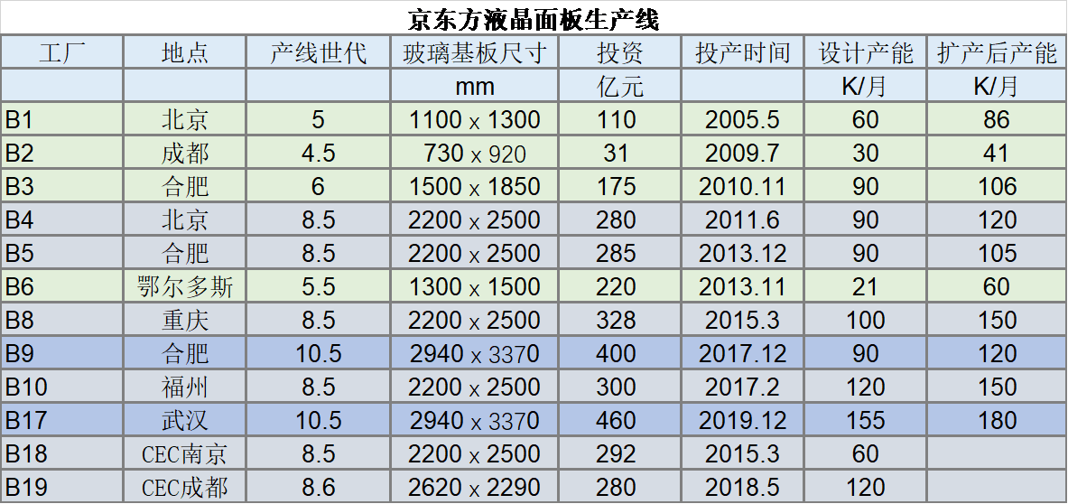 2020年,京東方收購了中電熊貓兩條8.5代線,至此京東方擁有6條8.5代線和兩條10.5代線,高端產能達到全球第一。