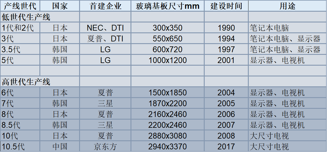 從1991年到2009年,液晶面板生產線從1代升級到10代,這段時間是液晶面板產業技術進步最快的時期。