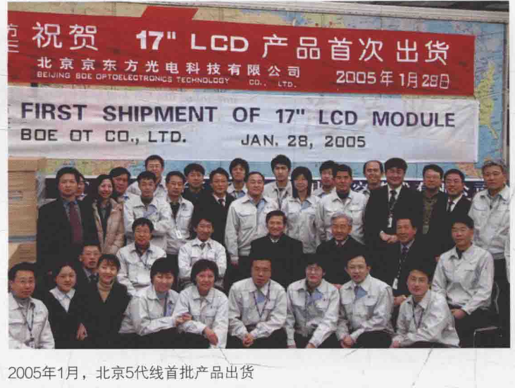 2005年1月28日,京東方5代線生產的17英寸液晶顯示屏首次交付國際客户;同年5月25日,京東方宣告5代線成功量產。