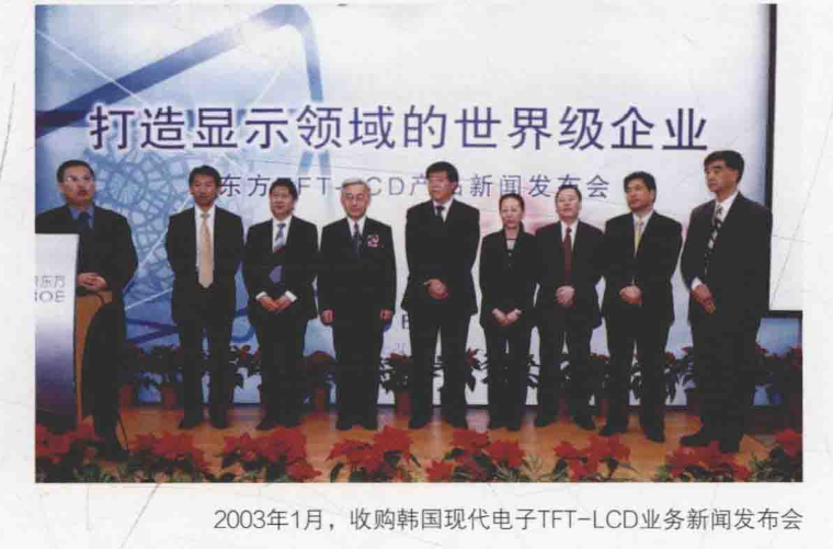 2003年,京東方成功收購韓國現代集團的液晶面板業務,並立即着手在北京建設一條5代線,以“海外收購、國內建線”的方式形成了自主技術能力。