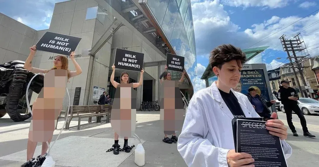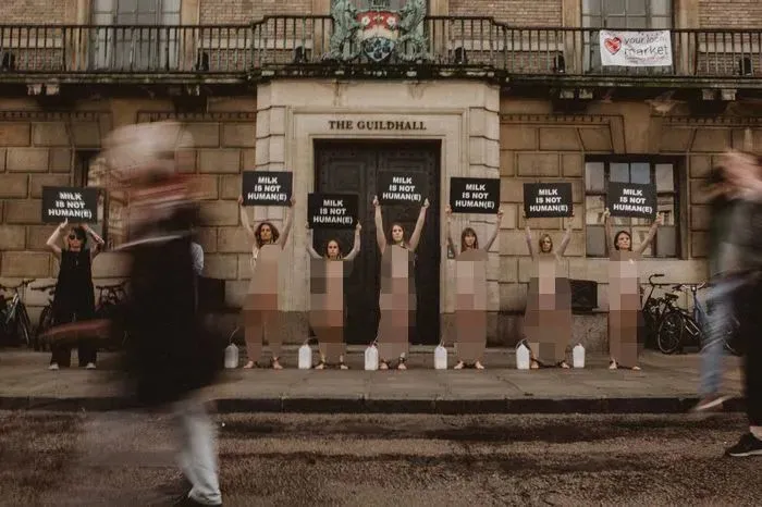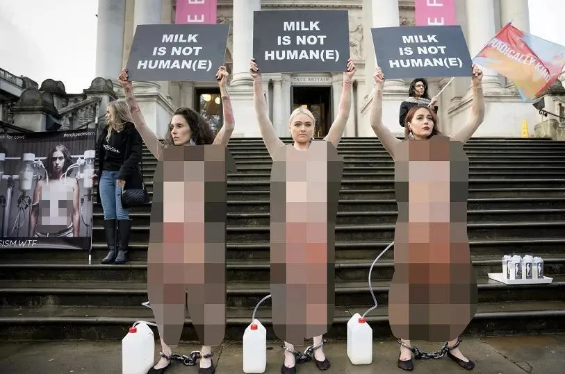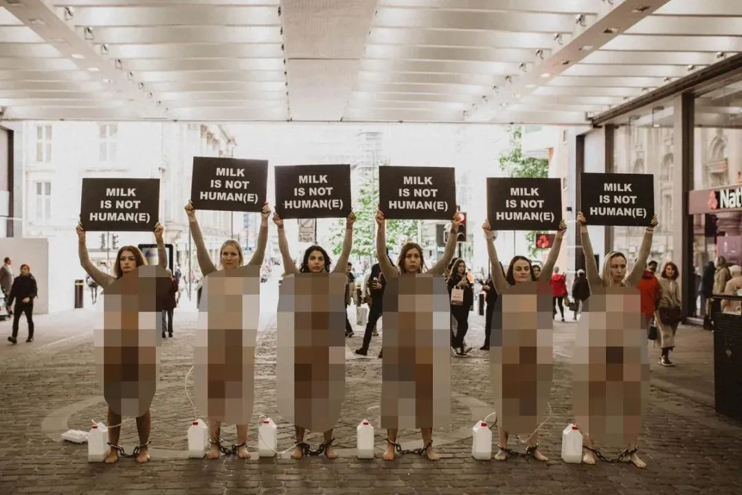 她們通過赤裸裸的視覺效果為奶牛抗議,向大眾揭露奶製品行業殘酷的事實真相。