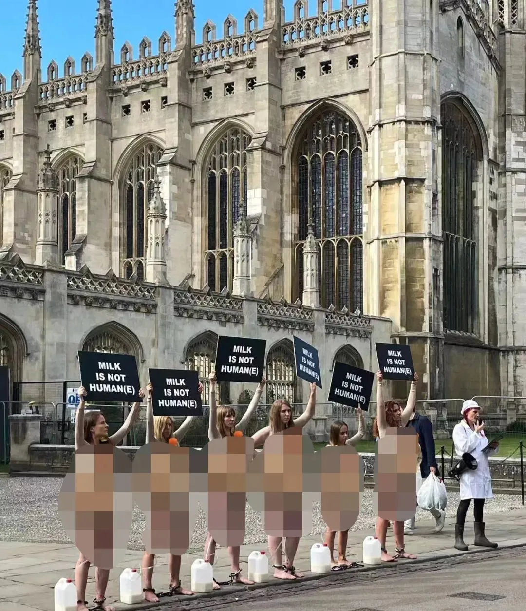 靠着這副裝束,她們在新聞宣發層面先後攻陷了倫敦泰特現代美術館、劍橋市中心市政廳前等要地。