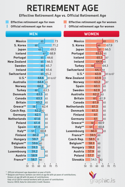 關於退休年齡的一點研究與有趣觀察(附主要國家地區的退休年齡)_風聞