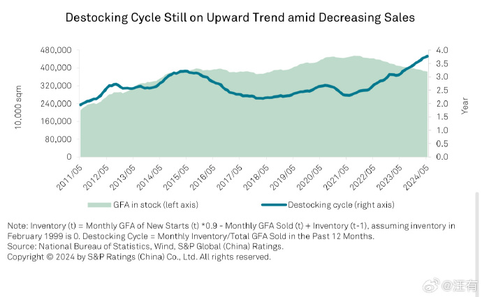 標普全球預測(不一定對,參考看看就行):認為2024年銷售額大約在9.5萬億至10萬億人民幣(想想2021年的峯值是18萬億)。那麼現在的庫存壓力還是存在的。