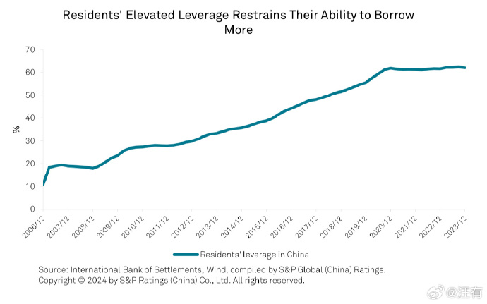 但再推出政策,人民再買新房,還是要提升槓桿。如圖3,現在大家槓桿率太高了。從2020年突破60%後,就不怎麼漲了,再讓大家貸款大家也怕還不起。降存量房貸幫大家降低壓力是對的。