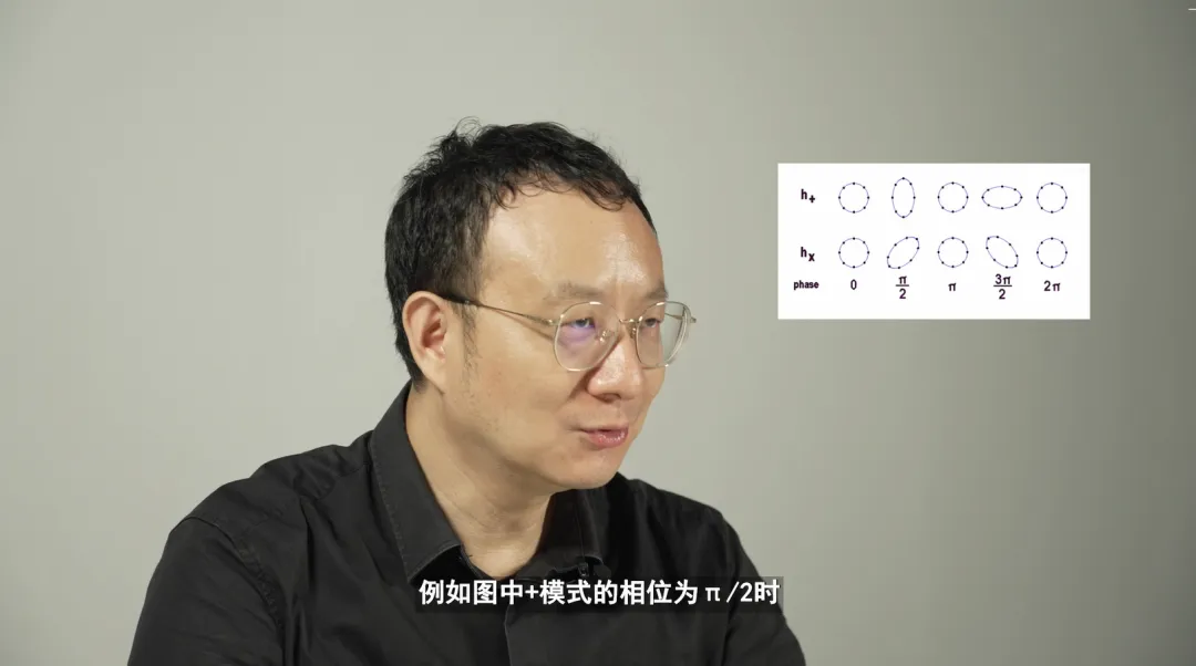 好比你在兩面哈哈鏡之間穿梭,一面哈哈鏡把你變成一個拉長的瘦子,另一面哈哈鏡把你變成一個壓縮的胖子(引力波有什麼魅力?物理諾獎得主巴里·巴里什獨家解讀 | 科技袁人)。這兩種變形就是引力波的效果,而你在這兩種變形之間循環往復的速度就是引力波的頻率。